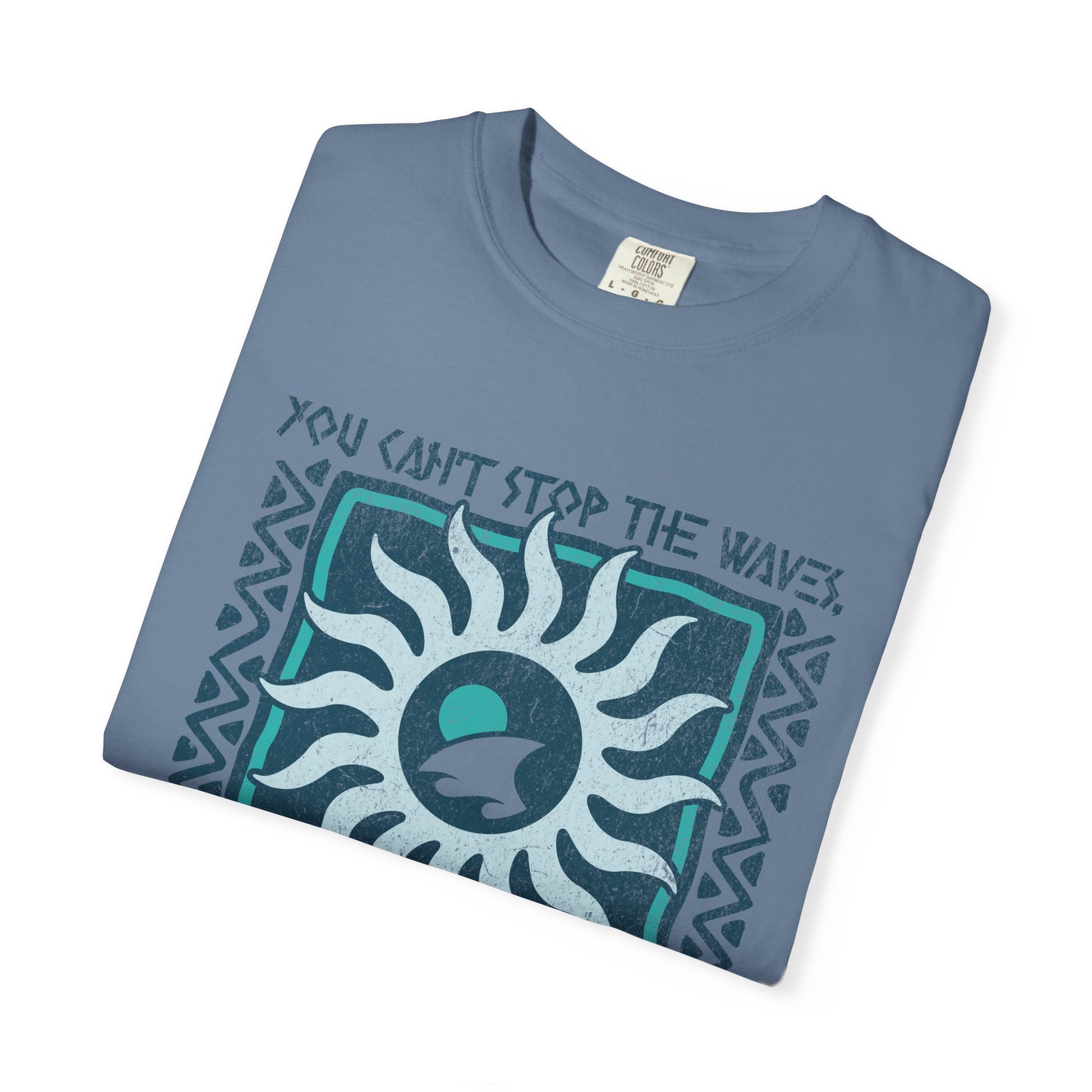 An oversized surf the waves shirt perfect for beach lovers and surf enthusiasts. This garment-dyed tee offers a relaxed fit and comfortable crew neckline, ideal for both casual and semi-formal settings. Perfect for accessorizing and adding a touch of laid-back style to any outfit. This unisex garment is relevant for beach vacations, surfing trips, or simply lounging by the water.